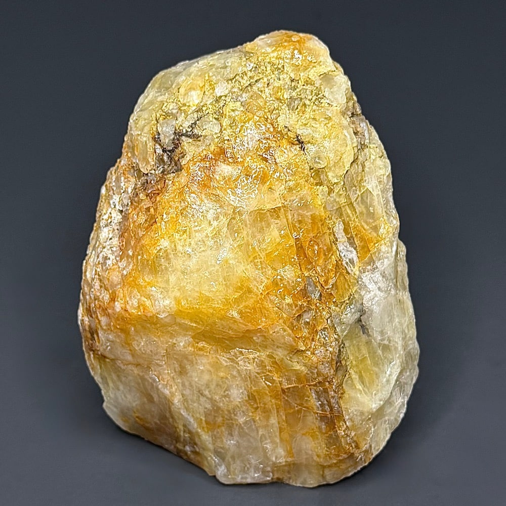 Citrine.Yellow, ranging to reddish-orange or brown (Madera quartz), and occasionally greenish yellow. Transparent.