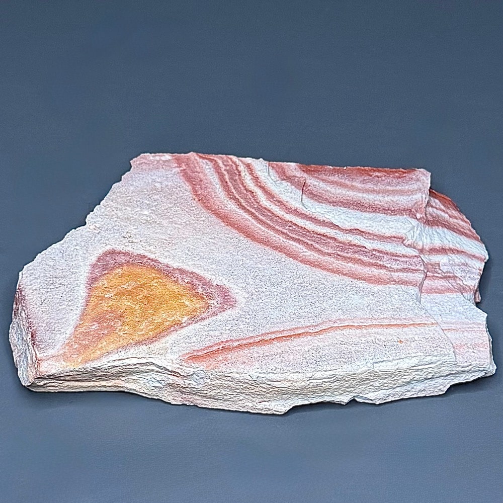 Appearance: Handpicked from our local rock collection, this piece displays soft desert tones when dry and deep red and orange contrasting designs when wet.