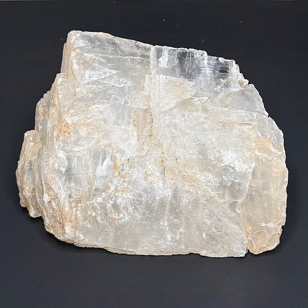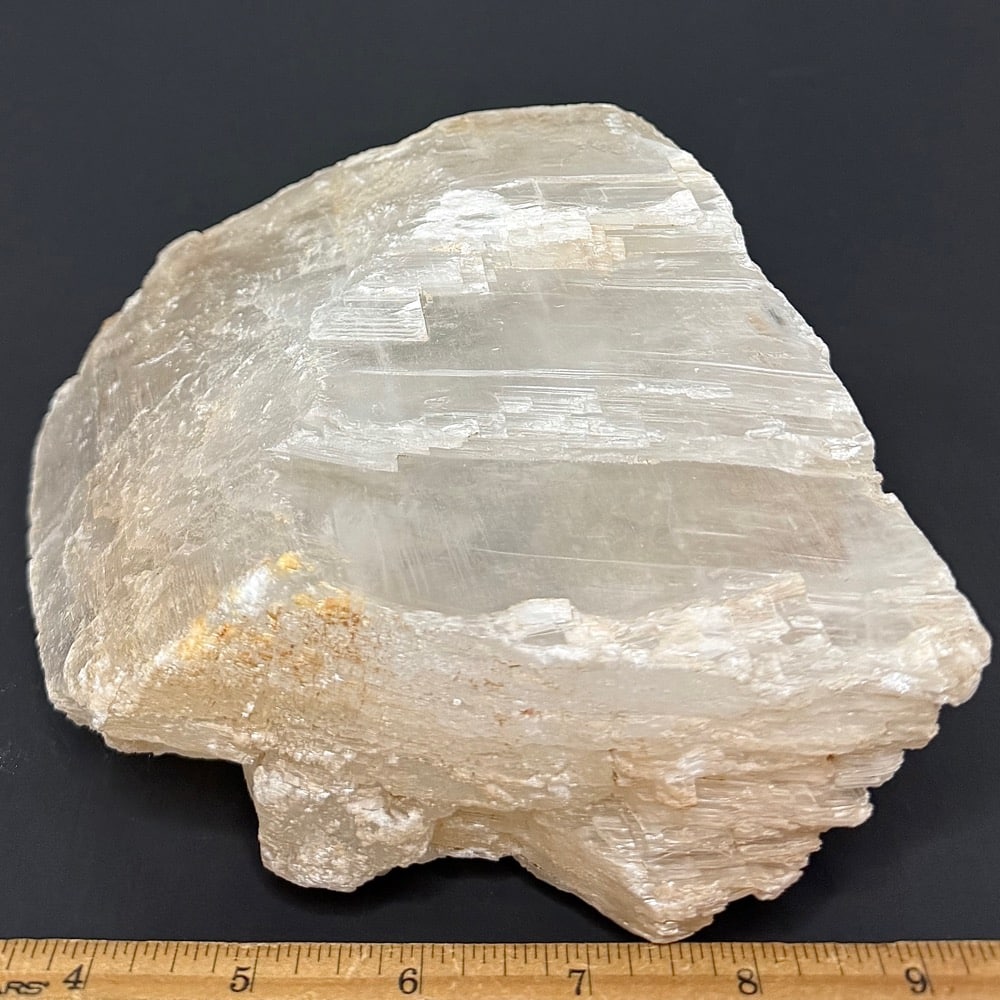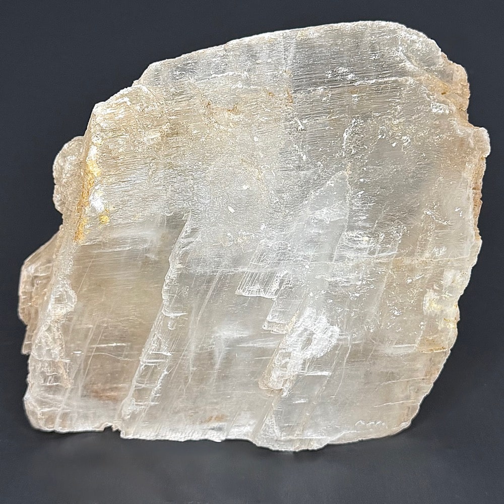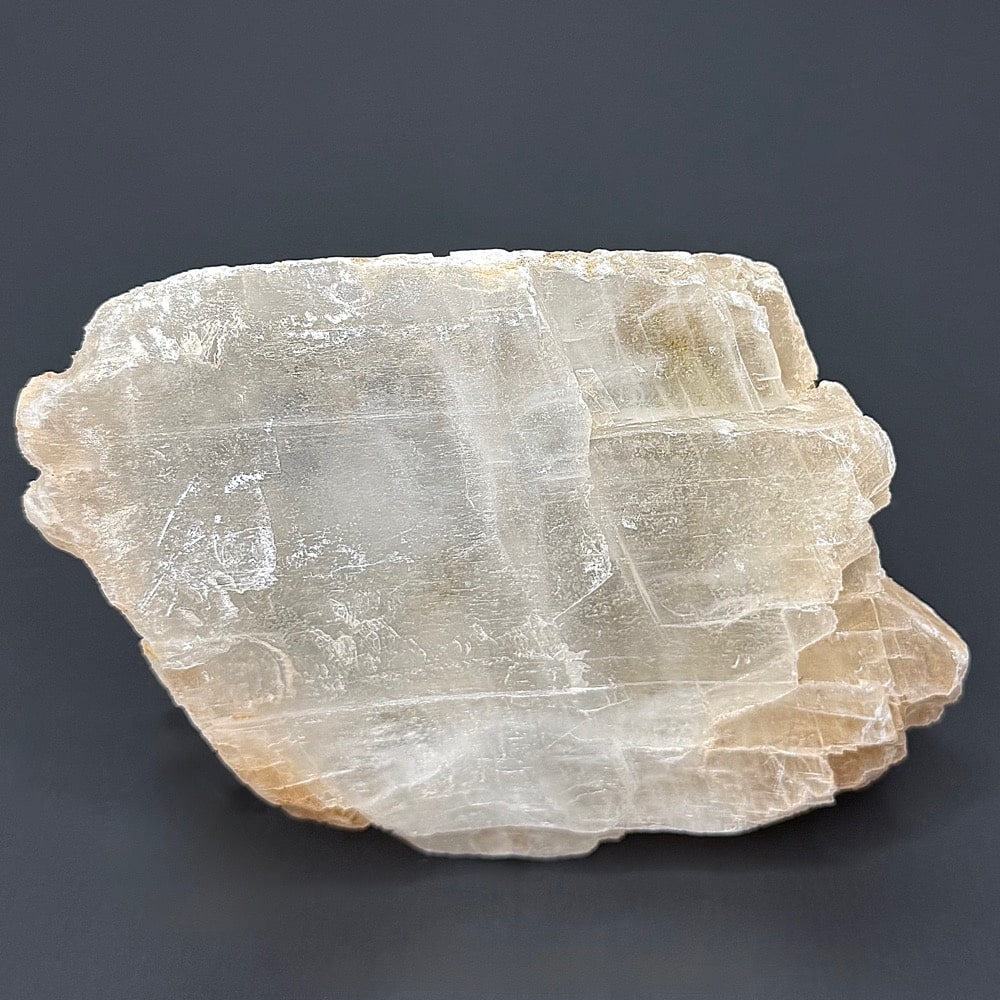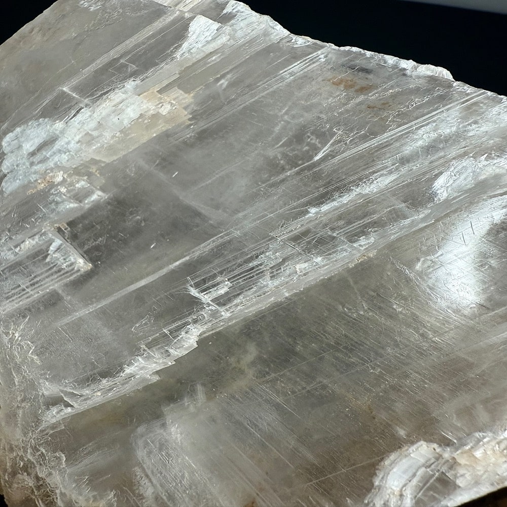 Selenite is a Crystalline variety of Gypsum. It is often transparent and colorless. If the Selenite Crystals show translucency, opacity and/or color, it is caused by the presence of other minerals, and many be “druzy”. Selenite often appears to have a “cat’s eye” appearance especially with the polished variety. It will often magnify images when the translucency is very clear.