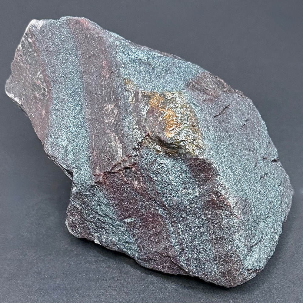 Specular Hematite, also known as Specularite, is a variety of Hematite with a shiny exterior surface with black undertones. The shimmering effect is caused by aggregate pockets of incredibly shiny flakes of Hematite as well as minor traces of Mica.