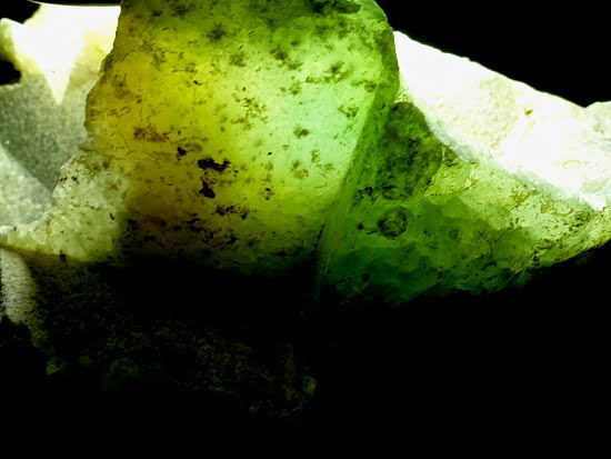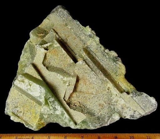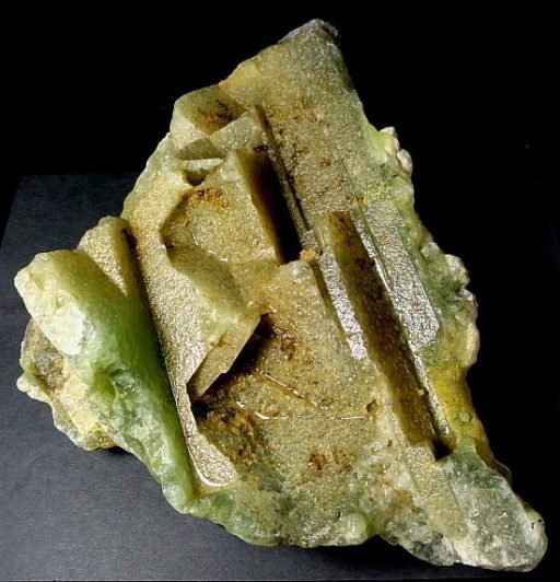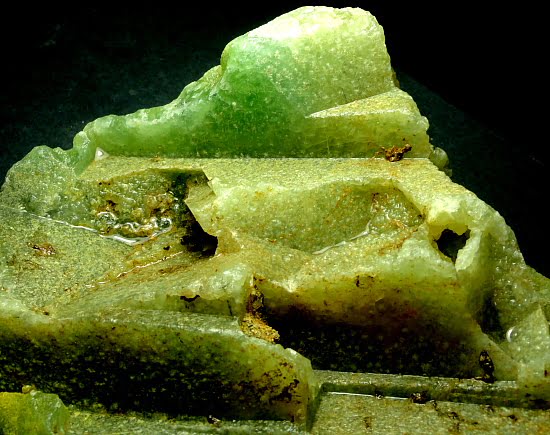 Prehnite is a Phyllosilicate mixture of Calcium and Aluminum. Although it is not a Zeolite, it is often associated with them and with Datolite and Calcite, in veins and cavities of Basaltic rocks, sometimes in Granites, Syenites or Gneisses. The color varies from light green to grey to white to yellow or a mix of colors. It is translucent and was named after its discoverer, Colonel Hendrik von Prehn.
