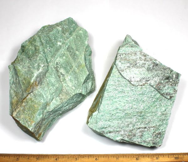 This is light green rough pieces of Quartzite. It works great for rock gardens, decorative pieces, and aquariums.