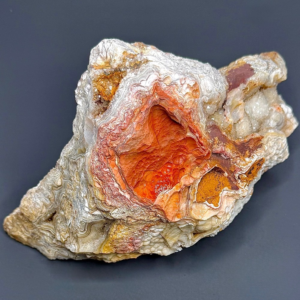 Agates mostly occur as nodules in volcanic rocks or waters containing Silica in solution which is possibly derived from the decomposition of Silicates in the lava. The Siliceous matter is deposited in regular layers resulting in the banded or striped formation. It is very unlikely that you would ever find an exact duplicate of any type of Agate, Brazilian or other.
