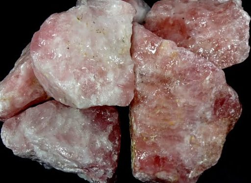 Rose Quartz is a type of Quartz which exhibits a pale pink to rose red hue. The color is usually considered as due to trace amounts of Titanium, Iron or Manganese, in the massive material. Some Rose Quartz contains microscopic Rutile needles which produce an asterism in transmitted light.