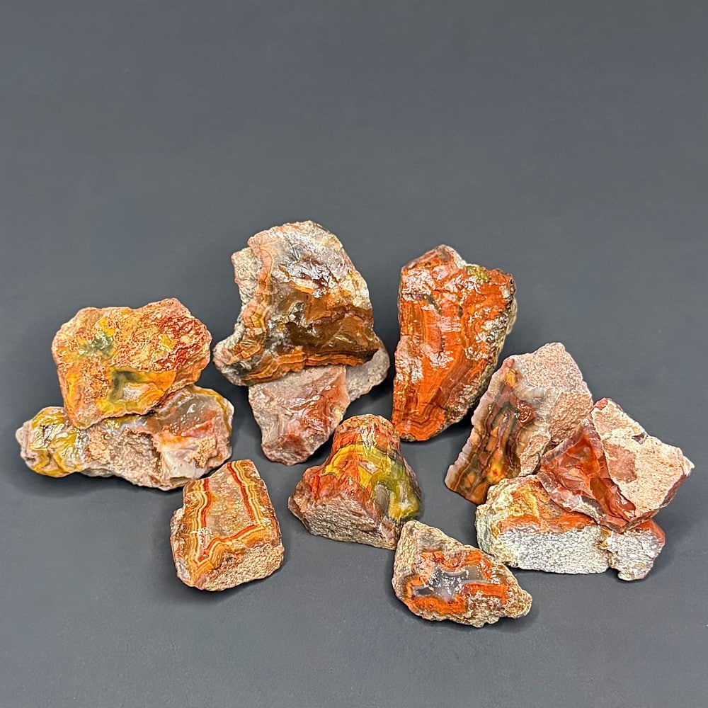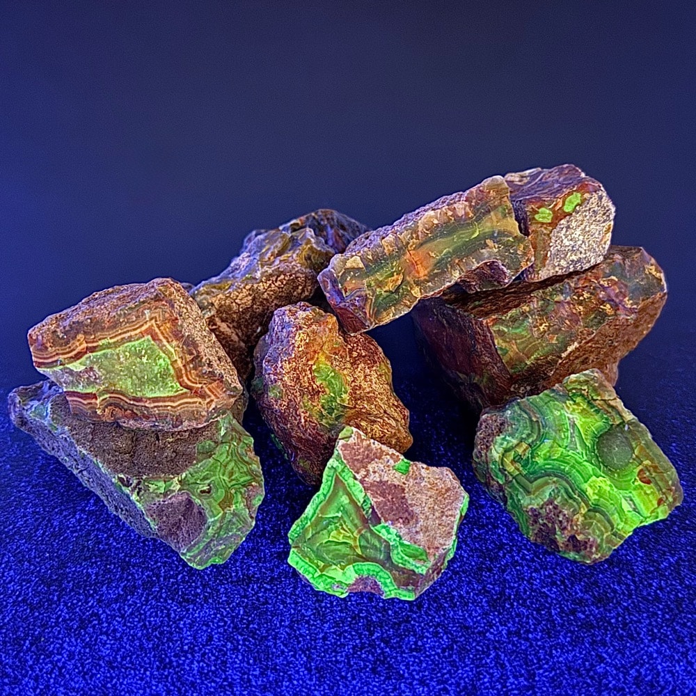 Appearance: The deep red pigmentation in these pieces add an earthy aesthetic. Various cutting options. SW/UV fluorescent.