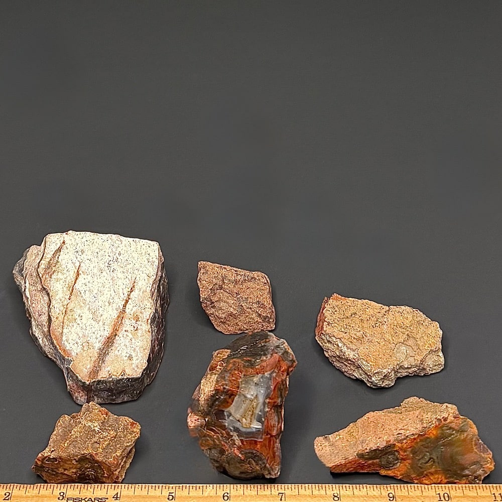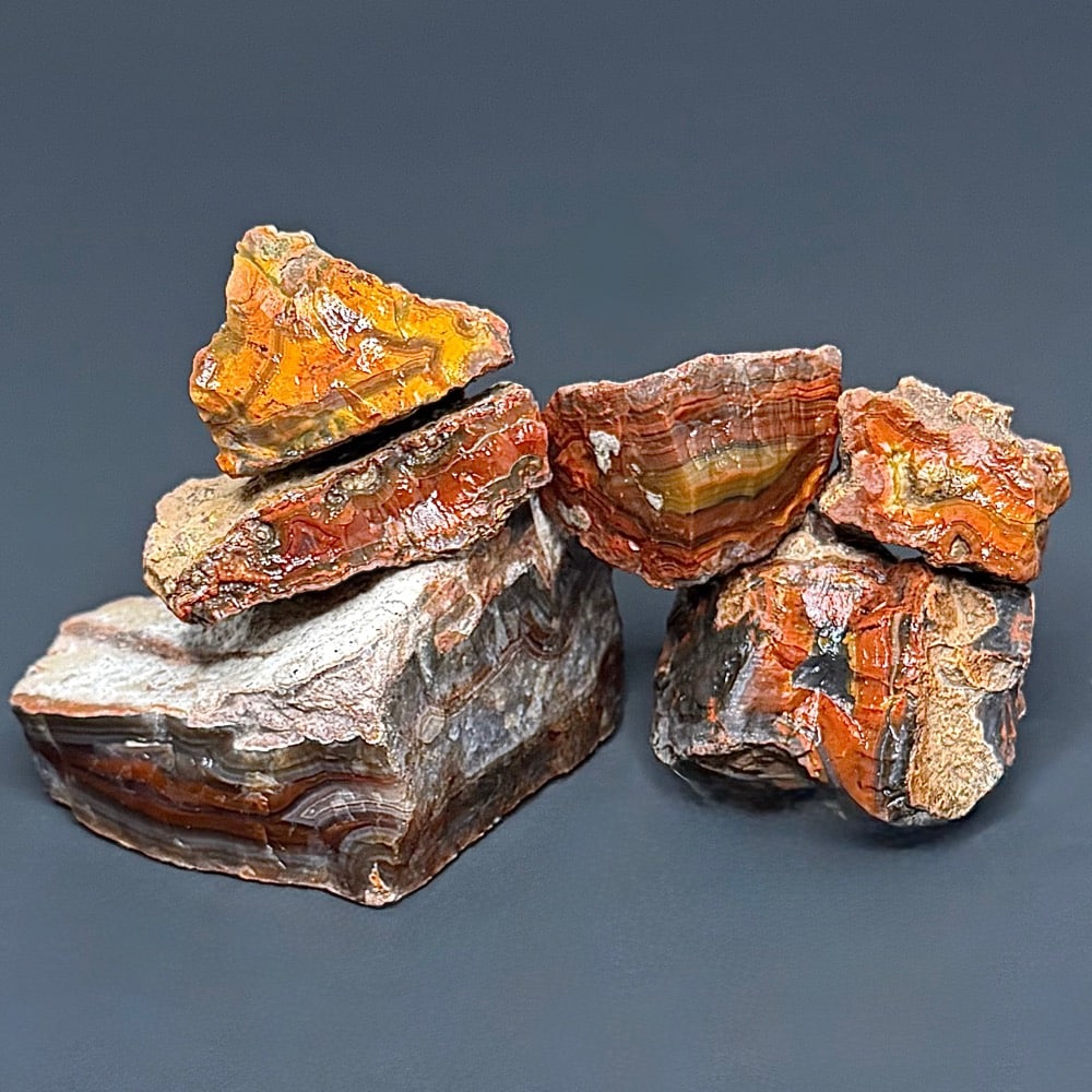 Agates mostly occur as nodules in volcanic rocks or waters containing Silica in solution which is possibly derived from the decomposition of Silicates in the lava. The Siliceous matter is deposited in regular layers resulting in the banded or striped formation. It is very unlikely that you would ever find an exact duplicate of any type of Agate, Fairburn or other.