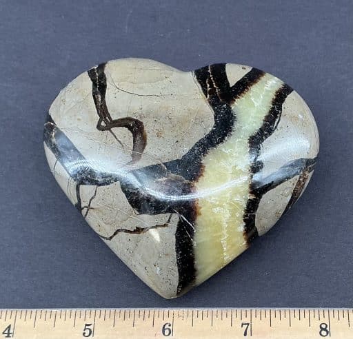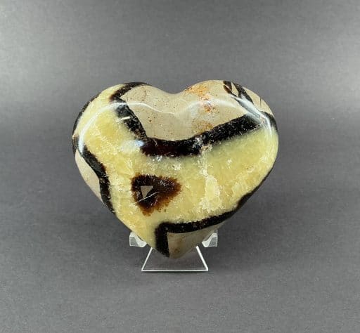 SEP105: Septarian Heart – Selection: High polish with broadly spread calcite and fossil mud patterning.