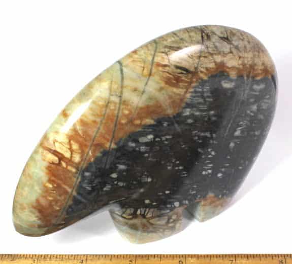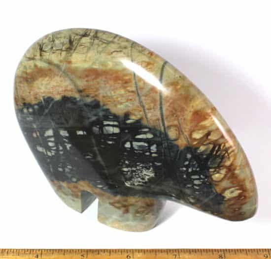 Septarians are commonly composed of a carbonate mineral such as Calcite, a microcrystalline form of Silica as in Flint or Jasper, or an Iron Oxide such as Hematite. These specimens are also known as a concretion which is a type of sedimentary rock. Septarians were formed millions of years ago by sediment forming around a fossil to create a mud ball transforming the fossil into Calcite and Aragonite.