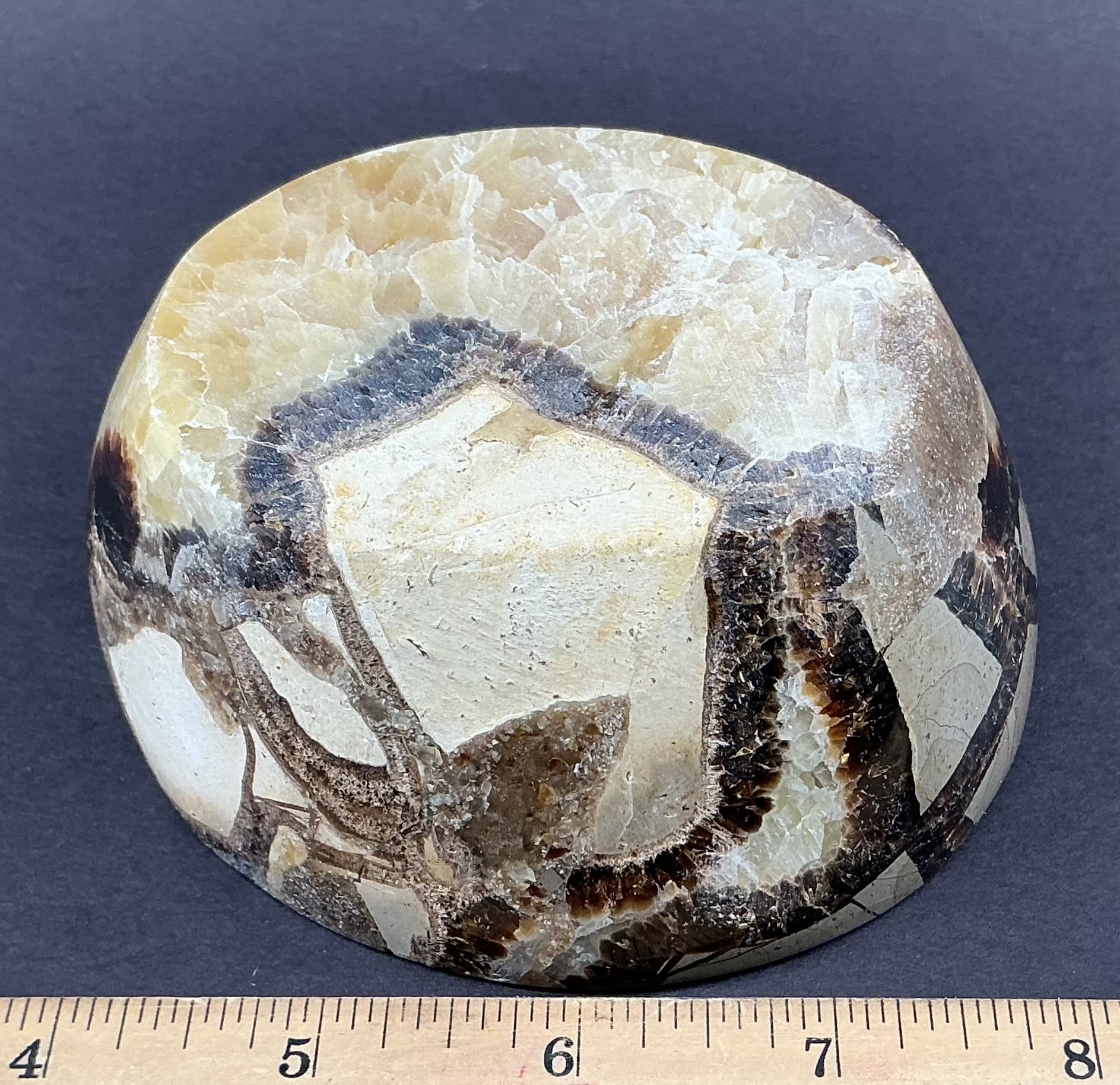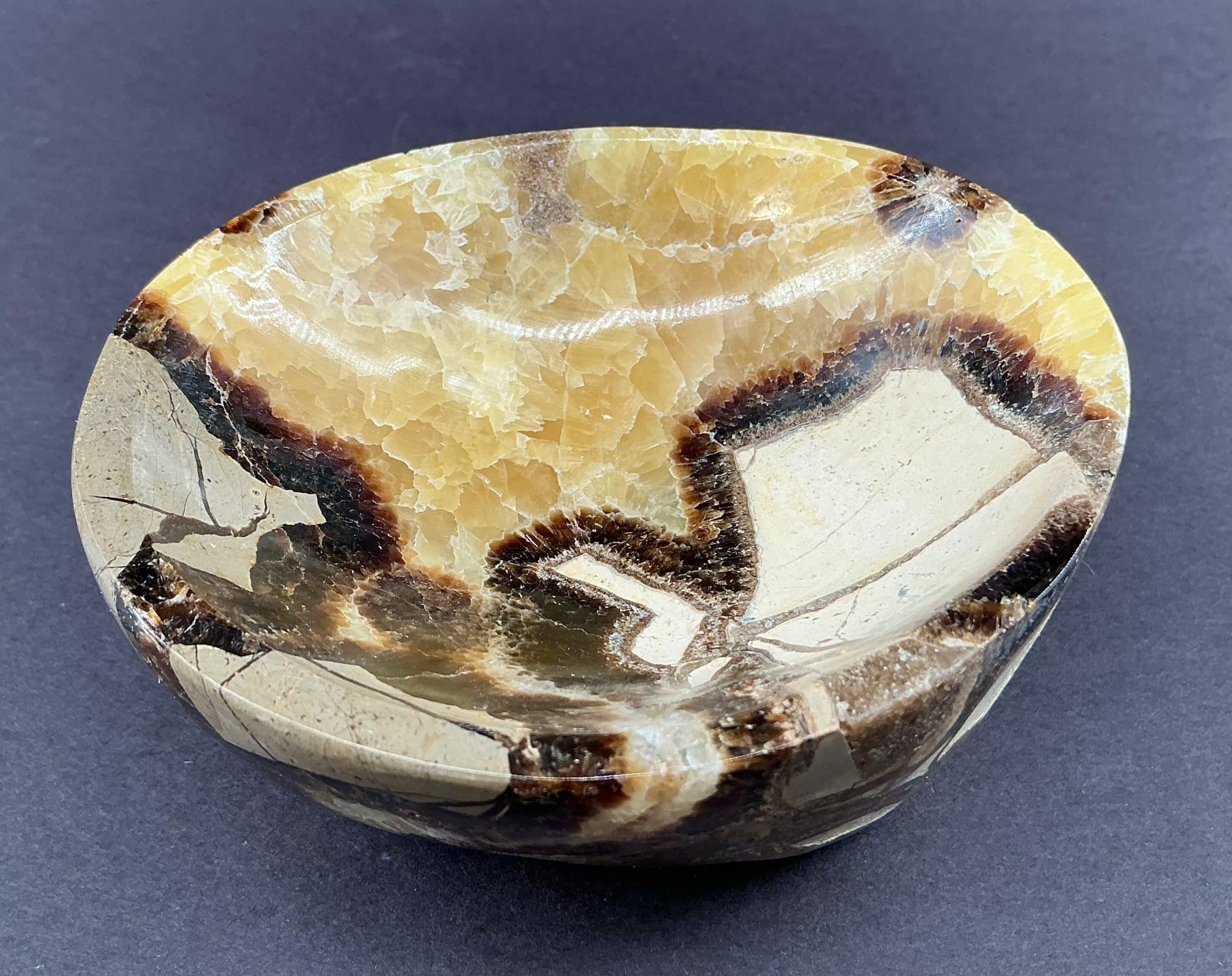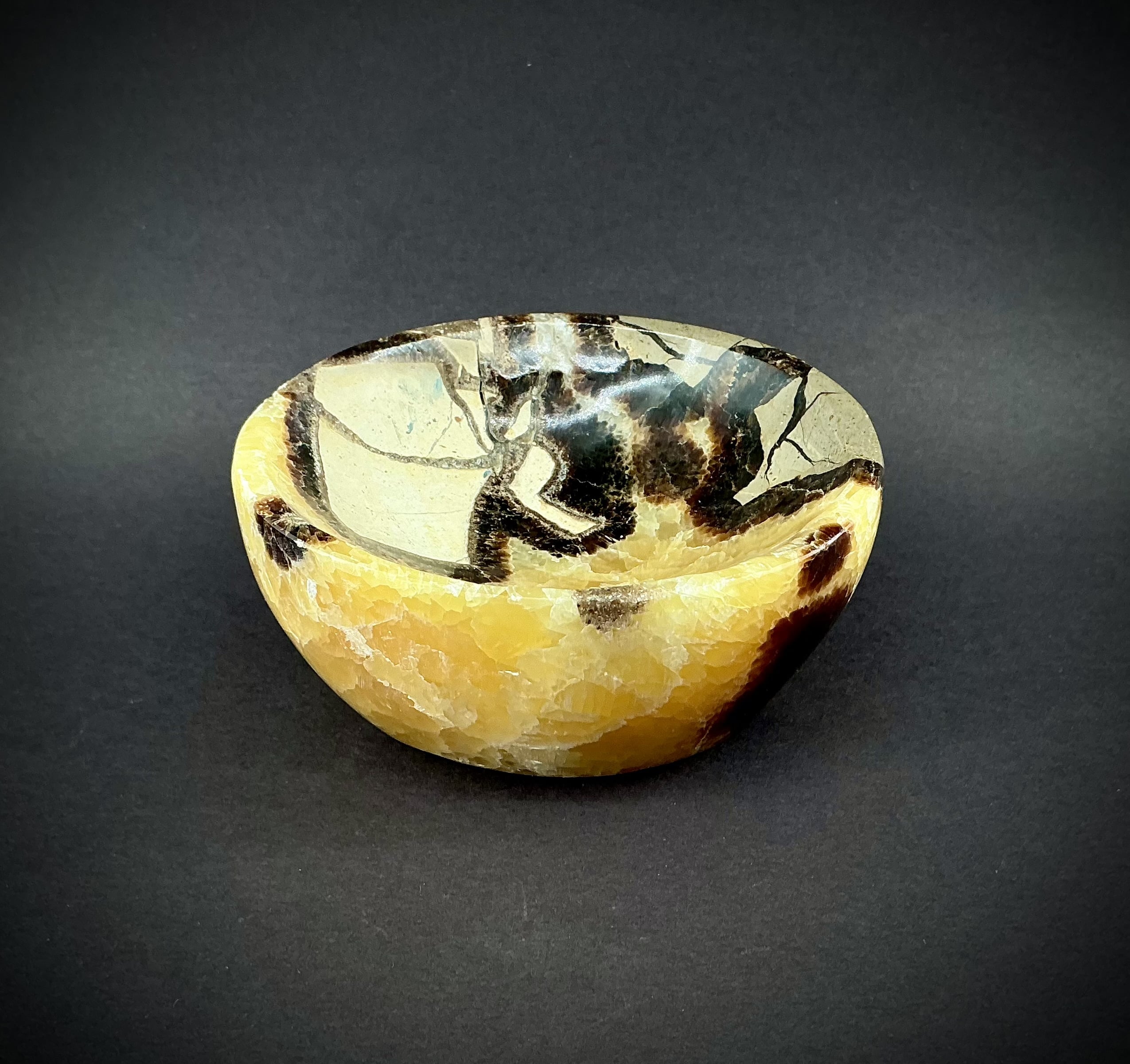 SEP304: Septarian Bowl  – Selection: Carved and polished top and sides. Smoothed, unpolished bottom. Solid mass patterning.
