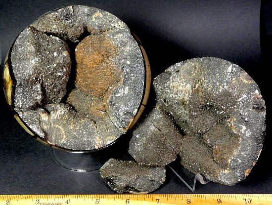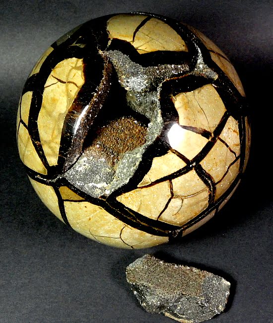 Septarian, also know as a type of Concretion, is a volume of sedimentary rock in which a mineral cement fills the porosity. Concretions are often ovoid or spherical in shape. They form within layers of sedimentary strata that has already been deposited. It is composed of a Carbonate mineral such as Calcite, a Silica such as Chert, Flint or Jasper or an Iron Oxide such as Goethite or Hematite. It is commonly found in Shale, Siltstones and Sandstones.