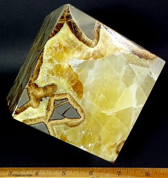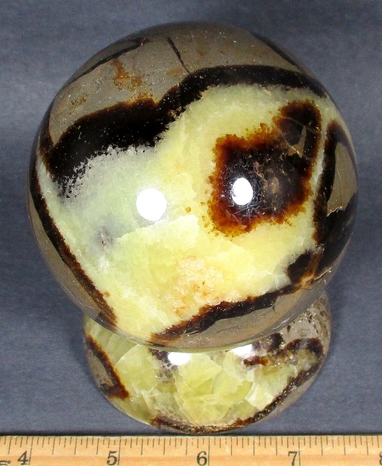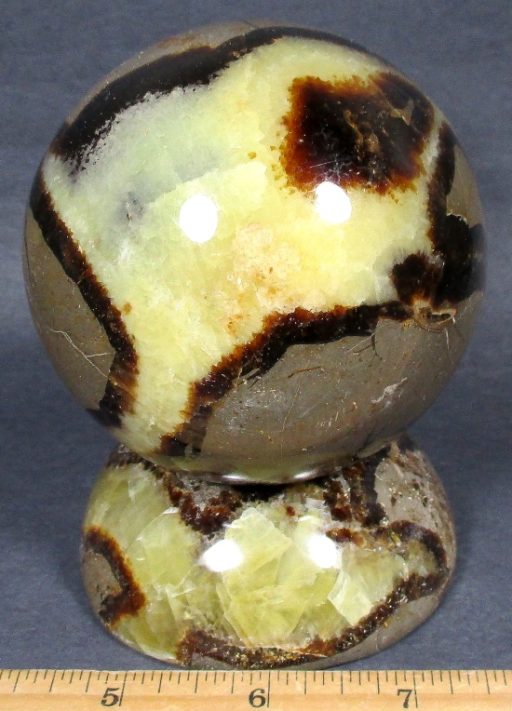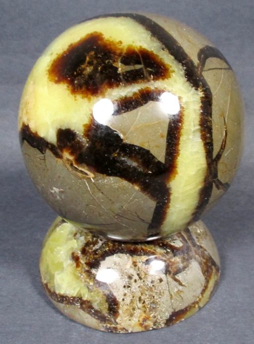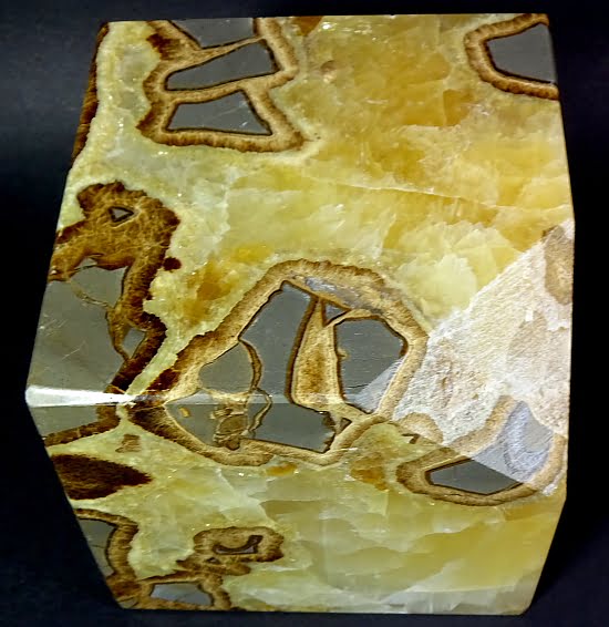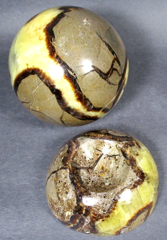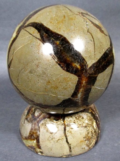 Septarian, also known as a type of Concretion, is a volume of sedimentary rock in which a mineral cement fills the porosity. Concretions are often ovoid or spherical in shape. They form within layers of sedimentary strata that has already been deposited. It is composed of a Carbonate mineral such as Calcite, a Silica such as Chert, Flint or Jasper or an Iron Oxide such as Goethite or Hematite. It is commonly found in Shale, Siltstones and Sandstones.