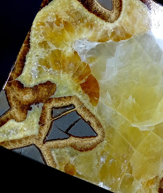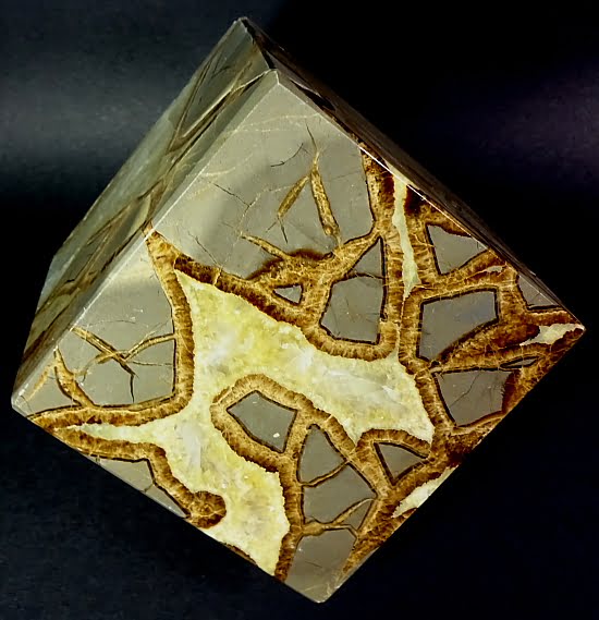 Septarian, also known as a type of Concretion, is a volume of sedimentary rock in which a mineral cement fills the porosity.  Concretions are often ovoid or spherical in shape.  They form within layers of sedimentary strata that has already been deposited.  It is composed of a Carbonate mineral such as Calcite, a Silica such as Chert, Flint or Jasper or an Iron Oxide such as Goethite or Hematite.  It is commonly found in Shale, Siltstones and Sandstones.