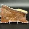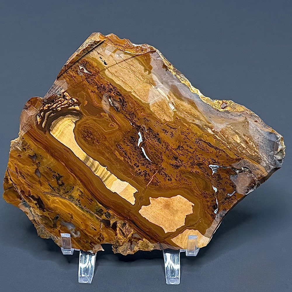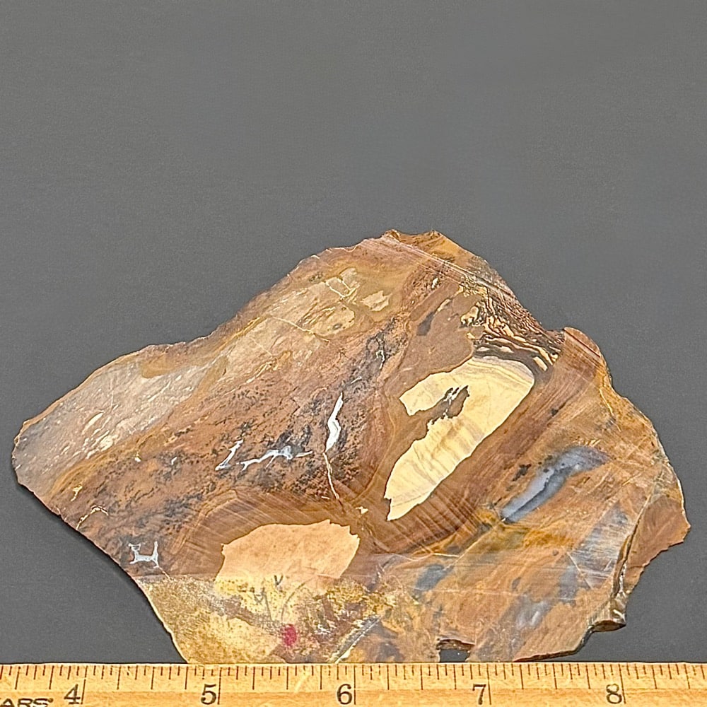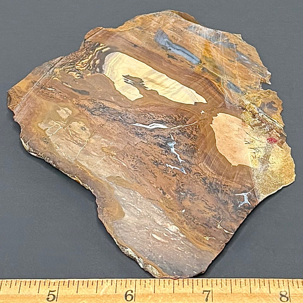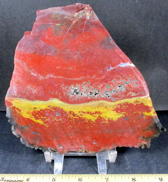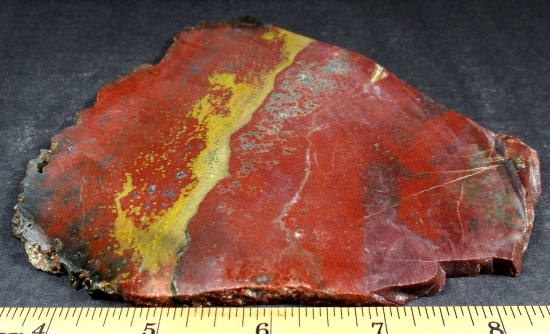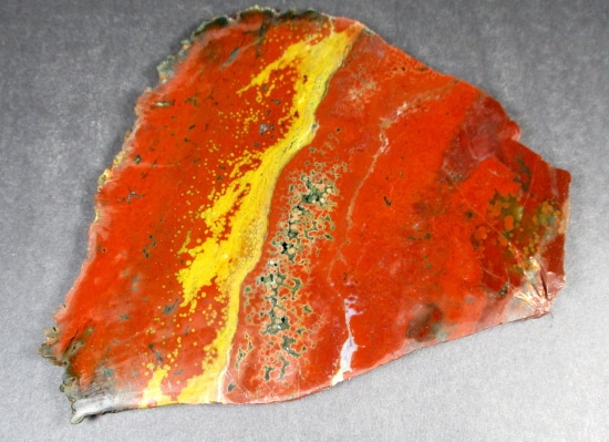 Jasper, or spotted stone, is an opaque, impure variety of Quartz that is usually red, yellow or brown in color. Some Jaspers simultaneously exhibit several variants such as banding, flow patterns, dendrites or color variations. This results in what appears to be scenes or images in a cut section of the Jasper.
