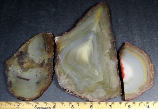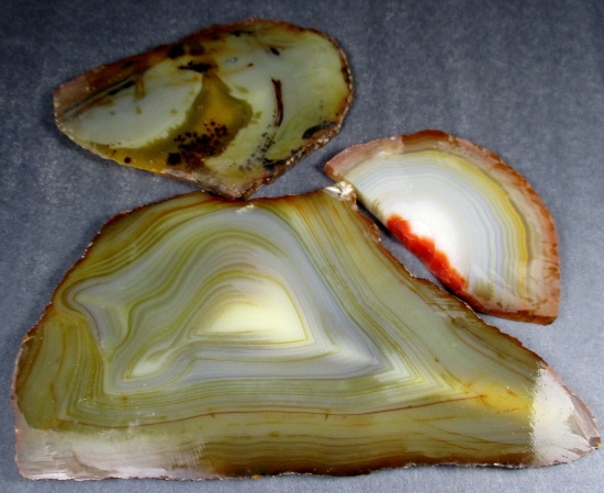 Among the best-known varieties of banded chalcedony is the stone often known as Mexican Crazy Lace Agate. The hardness of the material makes it a joy to cut, while the intricate patterns have made it a favorite since the 1950s. This unique agate forms into many different patterns in many colors, but the stones generally have a common “theme.”