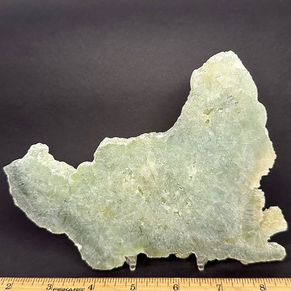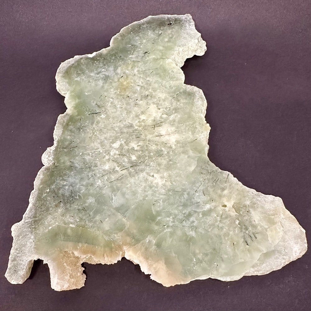Prehnite is a Phyllosilicate mixture of Calcium and Aluminum.  Although it is not a Zeolite, it is often associated with them and with Datolite and Calcite, in veins and cavities of Basaltic rocks, sometimes in Granites, Syenites or Gneisses.  The color varies from light green to grey to white to yellow or a mix of colors.  It is translucent and was named after its discoverer, Colonel Hendrik von Prehn.