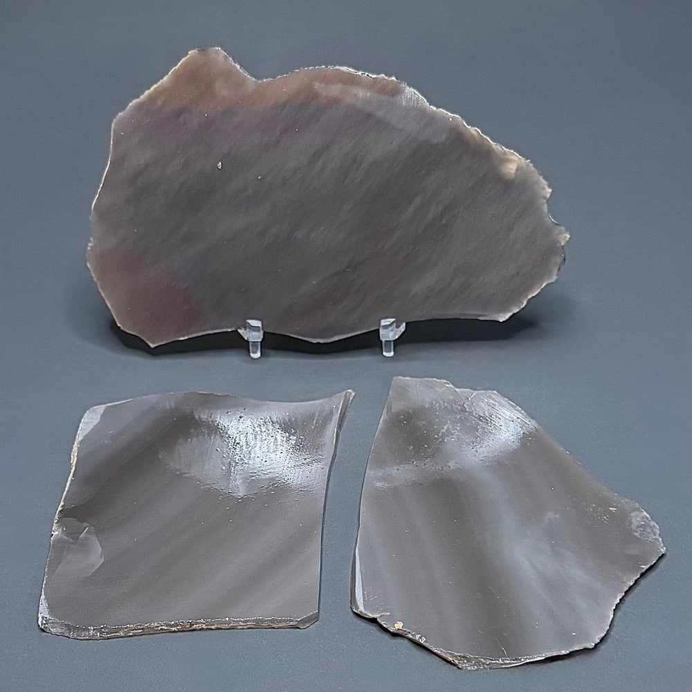 Obsidian is a type of naturally occurring glass formed as an extrusive igneous rock.  It is produced when felsic lava erupted from a volcano, cools rapidly through the glass transition temperature and freezes without sufficient time for Crystal growth.  Because of the lack of Crystal structure, Obsidian blade edges can reach almost molecular thinness, leading to its ancient use of projectile points (arrow heads), and its modern use as surgical scalpel blades.