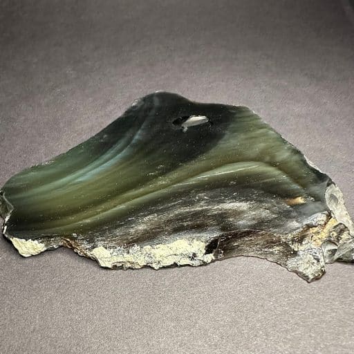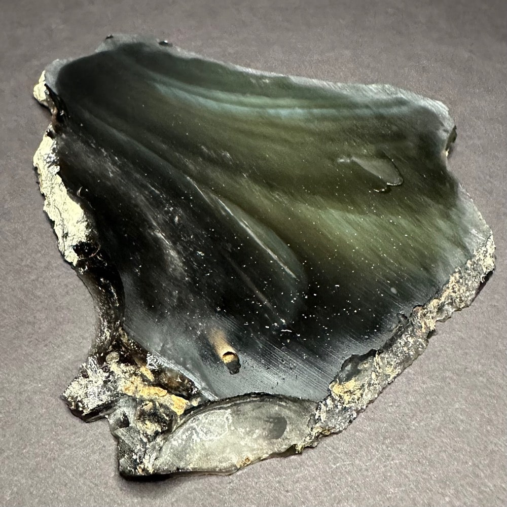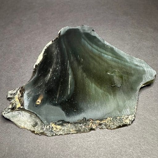 Obsidian is a type of naturally occurring glass formed as an extrusive igneous rock. It is produced when felsic lava erupted from a volcano, cools rapidly through the glass transition temperature and freezes without sufficient time for Crystal growth. Because of the lack of Crystal structure, Obsidian blade edges can reach almost molecular thinness, leading to its ancient use of projectile points (arrow heads), and its modern use as surgical scalpel blades.