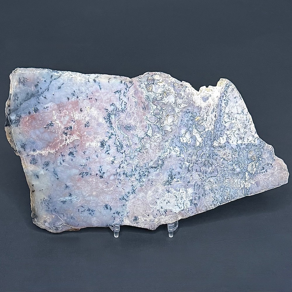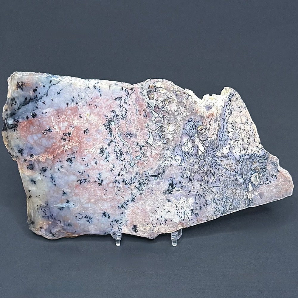 Dendrites are branched or tree like inclusions, usually manganese or iron oxides that are caused by irreversible aggregation of small particles forming large cluster. Dendritic crystal growth is common and resembles a snowflake formation or frost patterns on a window. Dendritic crystallization forms a natural fractal pattern. The term “dendrite” comes from the Greek word dendron, which means “tree”. It has only been in recent years that researchers have begun to understand how dendrites form and these ideas were developed by chemists and mathematicians working in disciplines called chaos and fractal geometry. Colloidal-sized particles move in random paths in a phenomenon called Brownian motion.