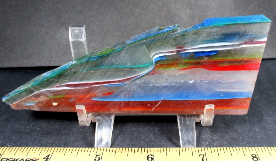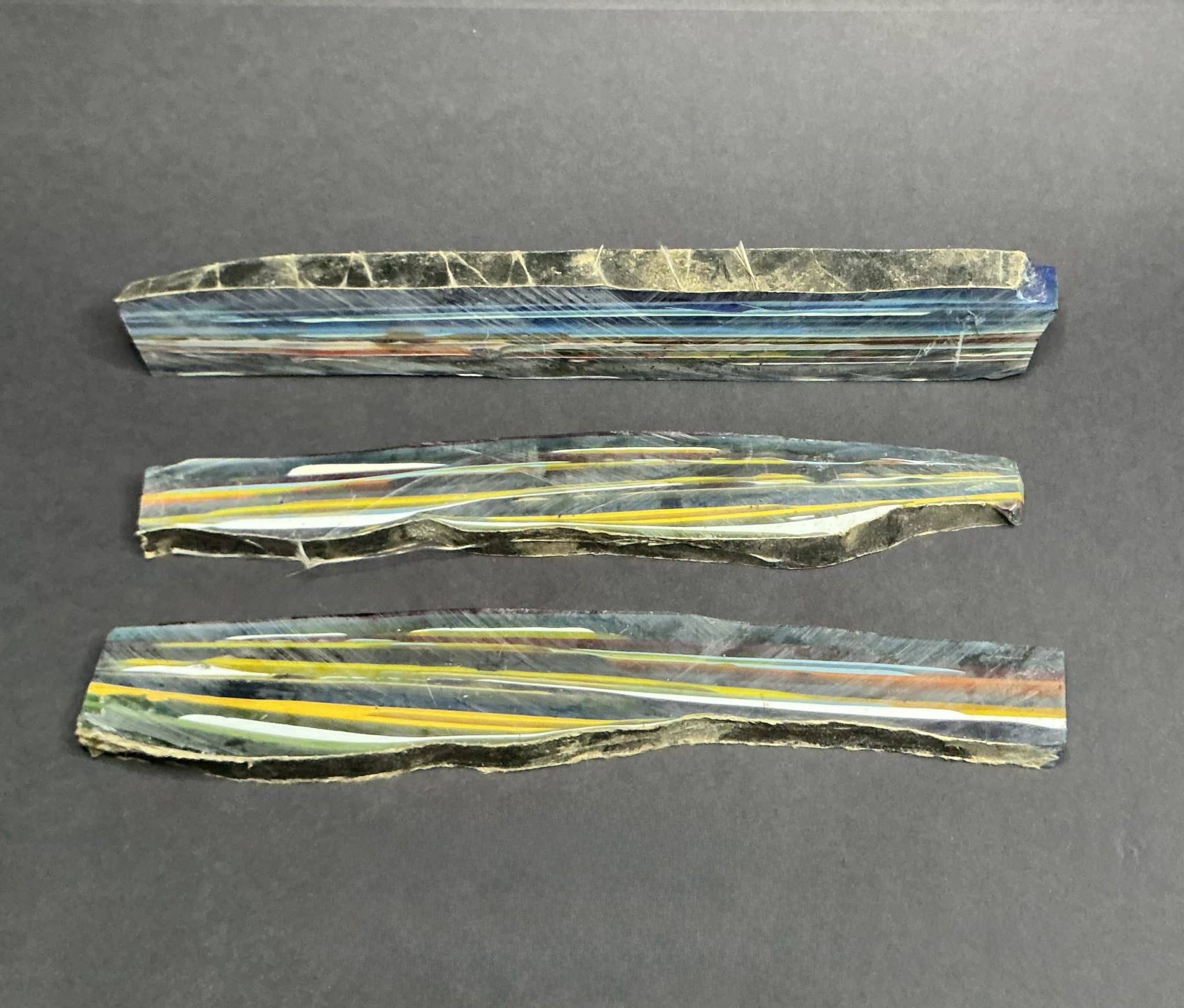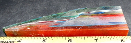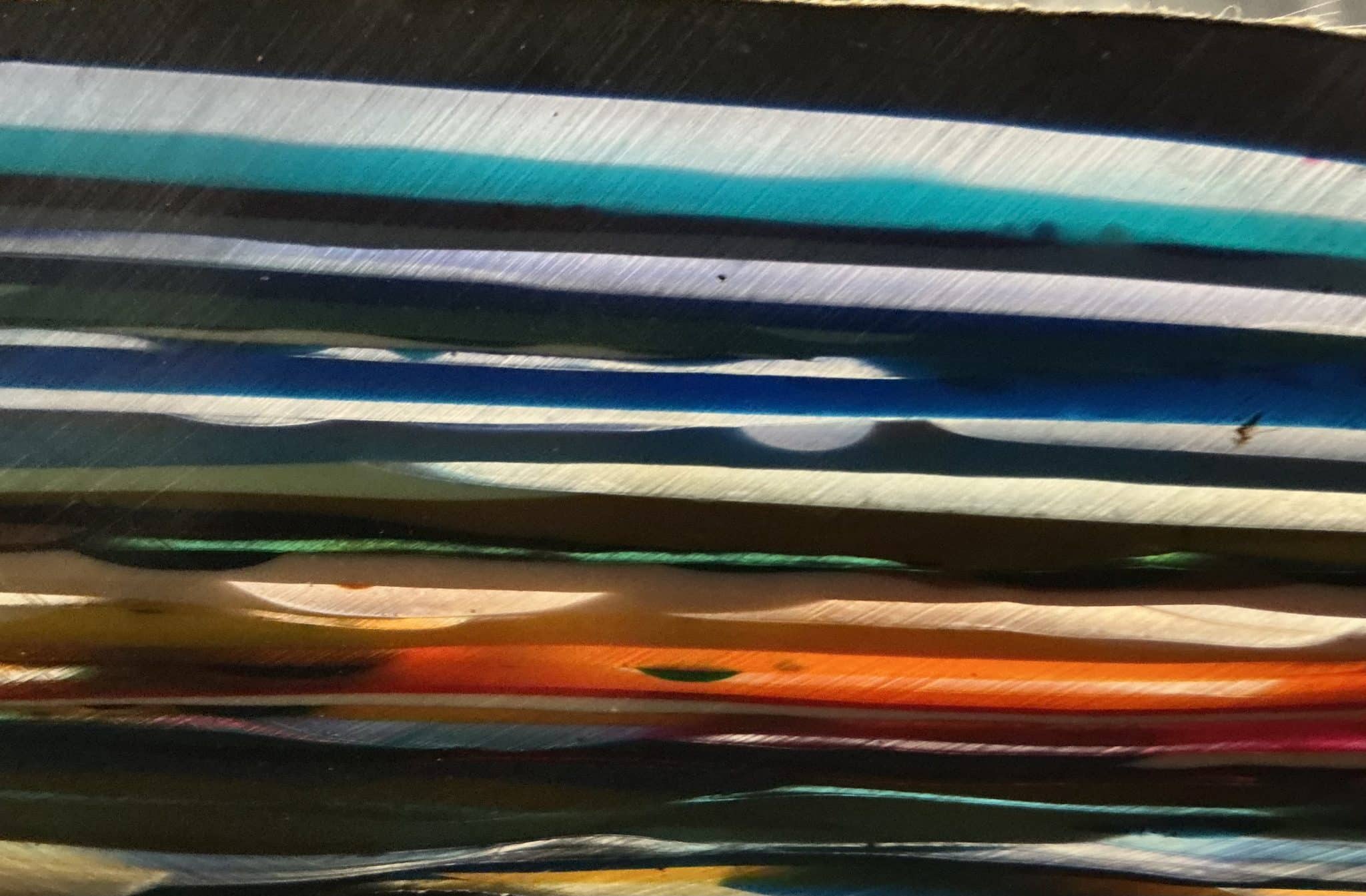“Surfite” or “Surf Stone” is a byproduct of the creation of surf boards. During the ‘glassing’ process a thick layer of fibgerglass cloth is laid over a foam board blank. A heavy coat of epoxy resin is poured to saturate the top and what doesn’t soak into the cloth spills over the edges and dries into layers on the floor. These hardened layers of resin eventually accumulate and need to be chipped up and removed to make space to work. These chunks, sadly, are most often thrown away as ‘waste.’