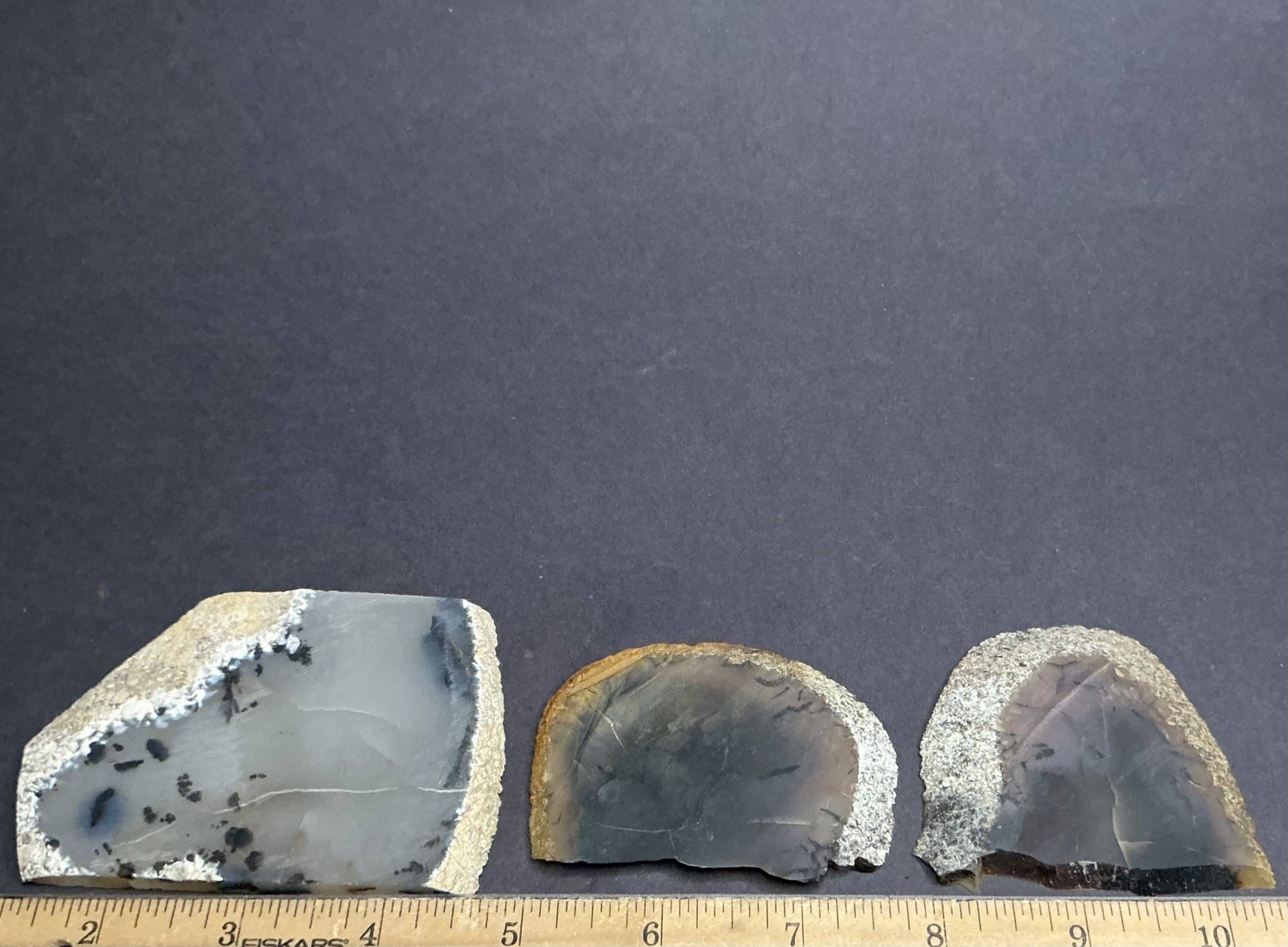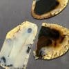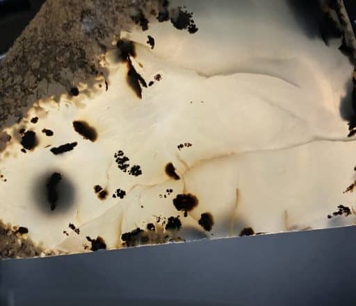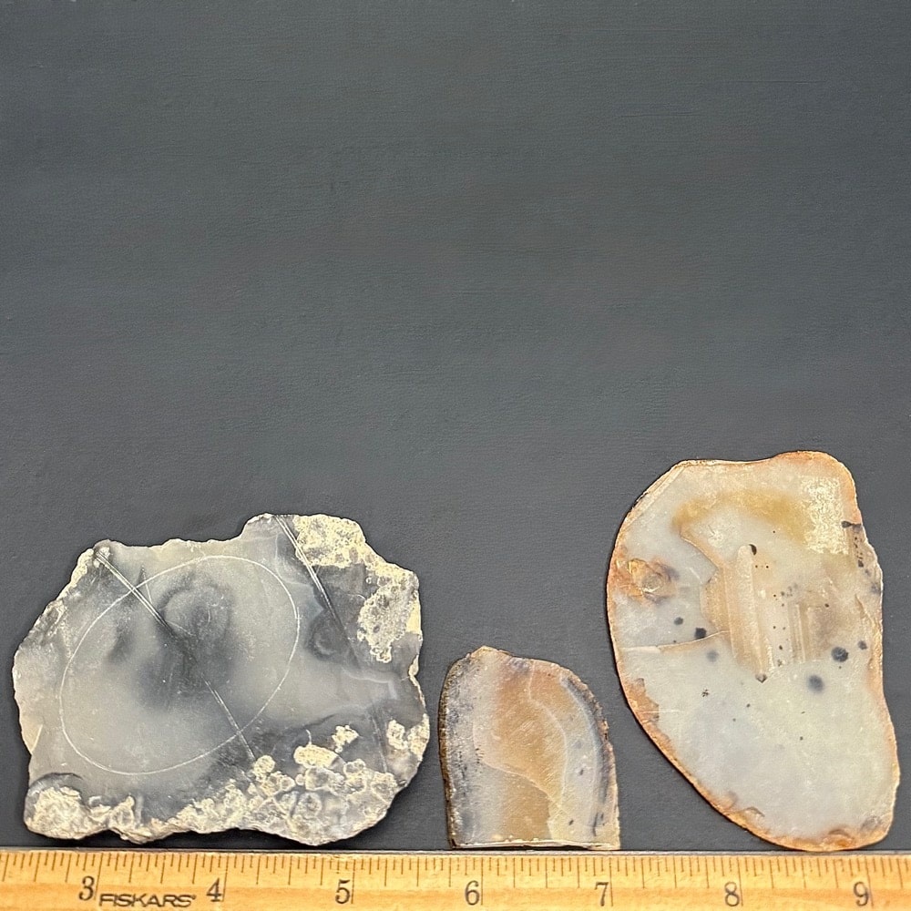 Please note, in the last photos, the slab is wet and shot with backlighting. This is a visual representation of a potential outcome, if polished, and a display of translucence.