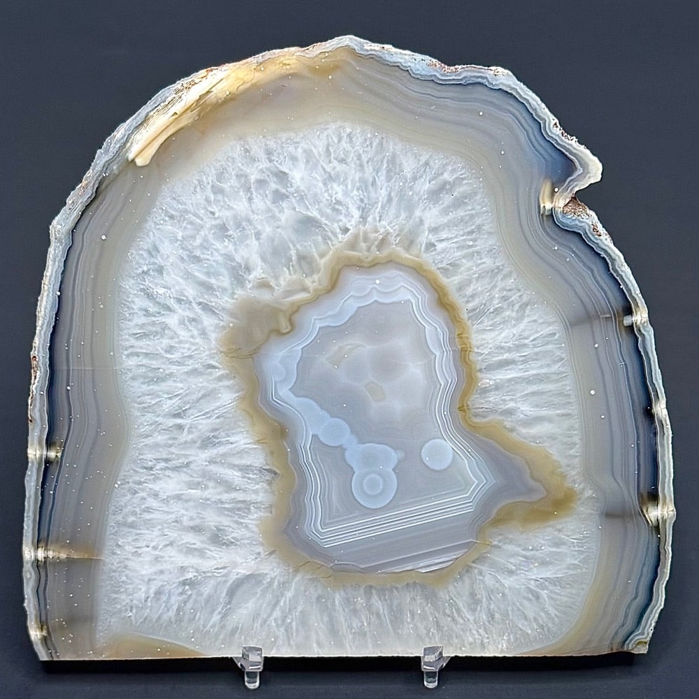 Appearance: Nice banding, crystal and color. Translucent.