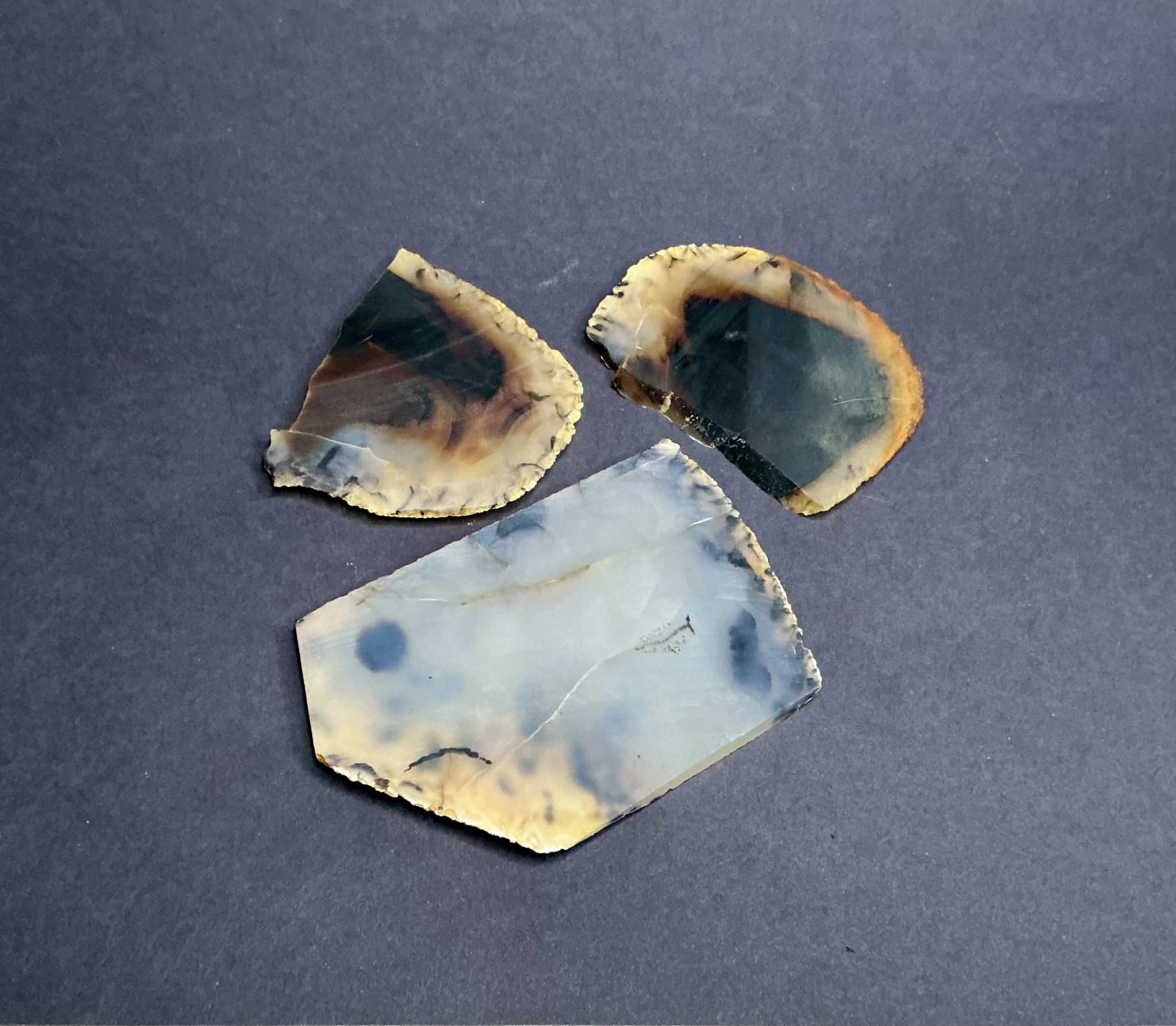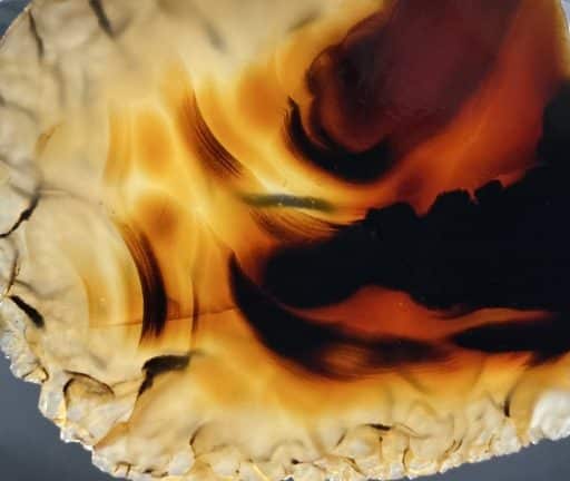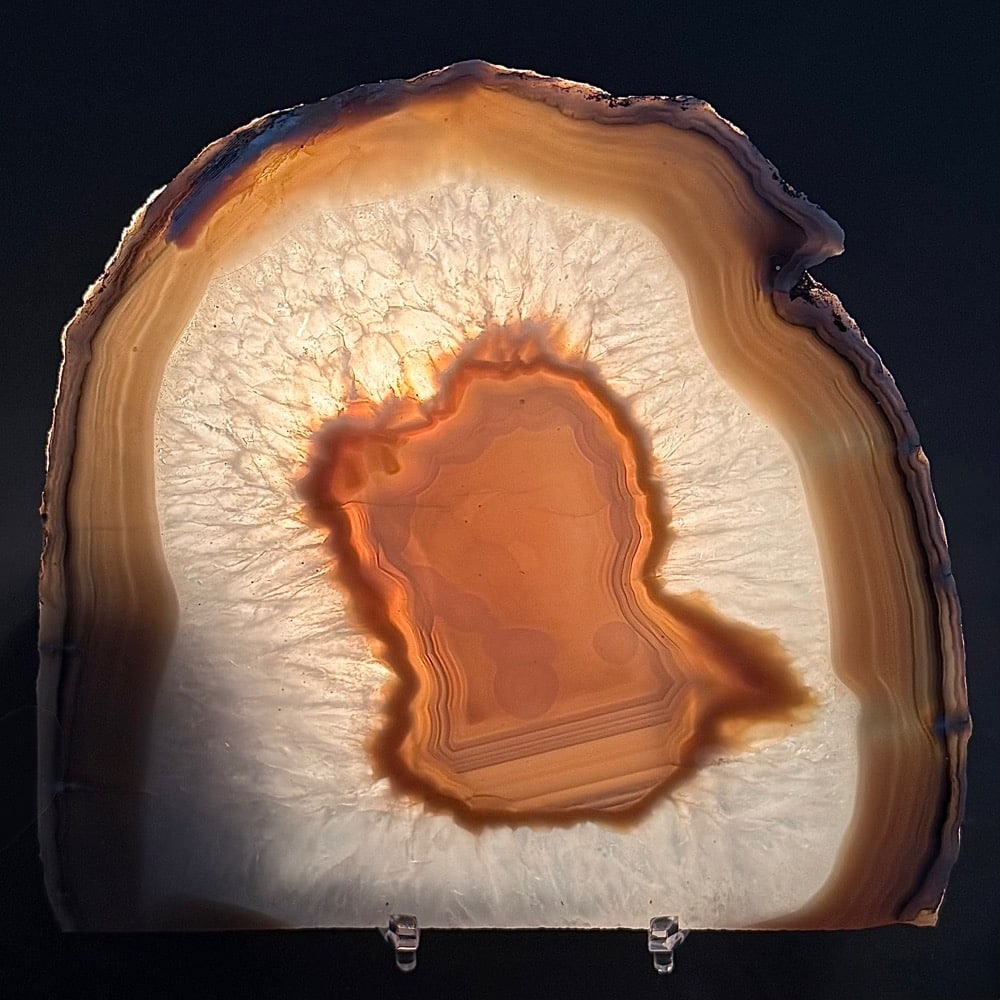 Agates mostly occur as nodules in volcanic rocks or waters containing silica in solution possibly derived from the decomposition of silicates in the lava.  The siliceous matter is deposited in regular layers resulting in the banded or striped formation.