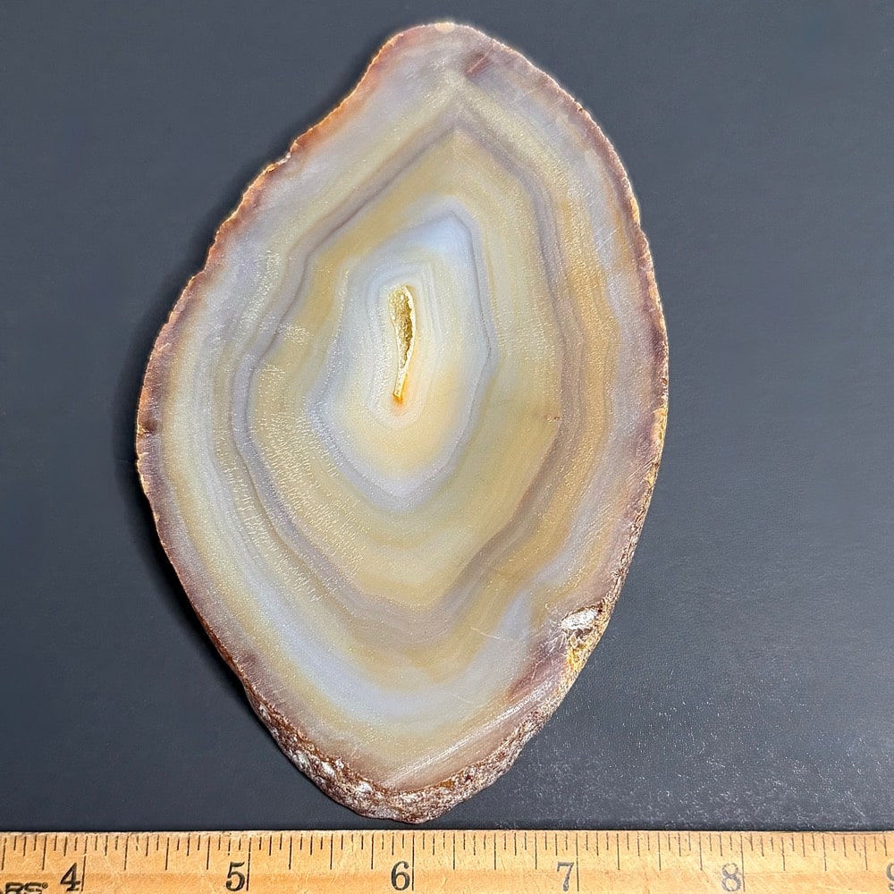 Agate formation isn’t 100% understood, but the general idea is that hot water seeps into empty pockets in the limestone bedrock. The hot water carries large amounts of silica, which deposit as the water slowly evaporates. It’s often thought that the water which forms them is closer to a gel due to the heat and pressure involved in their formation as time goes on, the agates will form in bands. We’re still not quite sure if they form from the outside in or the inside out. Both theories have valid points, and the truth is that both could be true, it depends on the region in which they form.