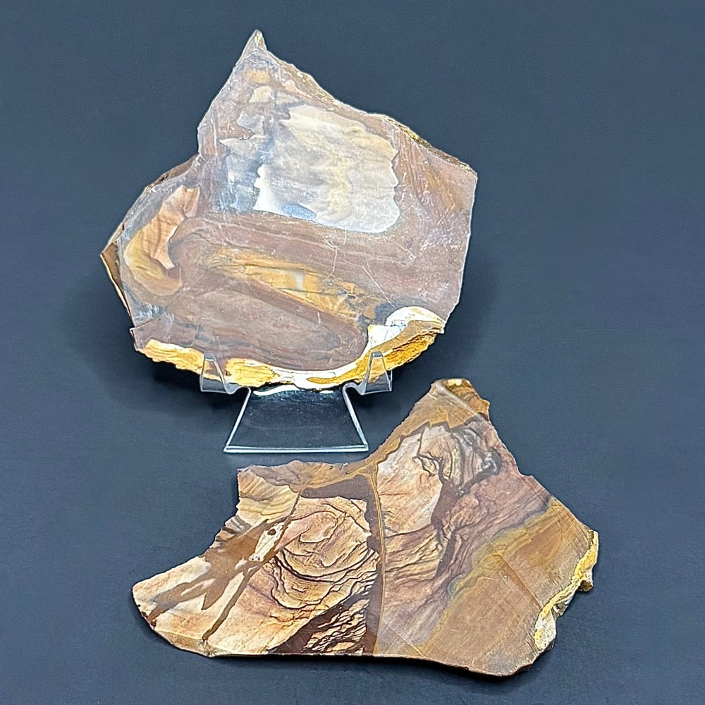 Biggs Jasper is a variety of the mineral jasper. It is a “picture jasper” – a jasper that exhibits particular patterns and colors – and is used as an opaque gemstone. It exhibits intricate, shell- or layer-like patterns in shades of brown ranging from beige to dark brown.