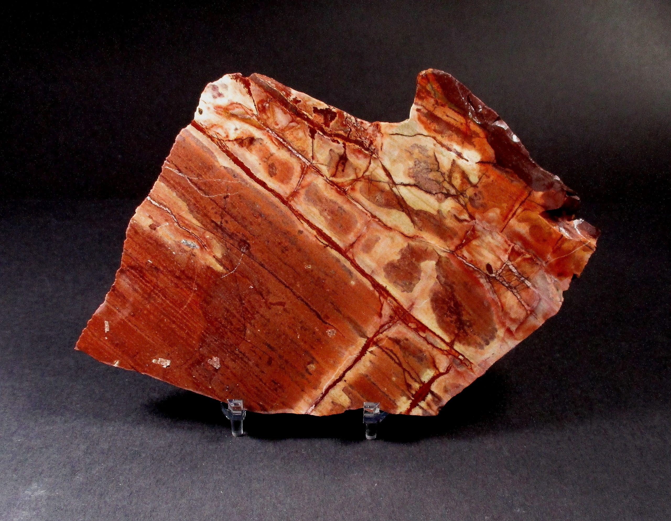 Imperial Jasper is considered to be one of the five fine jaspers. (The other fine jaspers are Bruneau jasper, Morrisonite, Willow Creek jasper and Blue Mountain jasper). Imperial Jasper is found about 50 miles northwest of Guadalajara, Mexico on the east side of a steep canyon. This canyon lies north of the small town of San Cristobal and its steep slopes are covered with dense vegetation. The jasper-bearing area is very large, almost 6 km long with many individual deposits, each with its own characteristics. Pink Imperial, Brown Imperial, Green Imperial, Spiderweb Imperial, Select Imperial, and Royal Imperial are all names associated with these various jasper deposits.