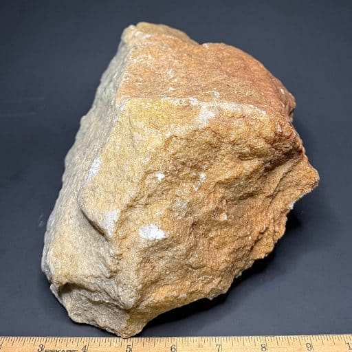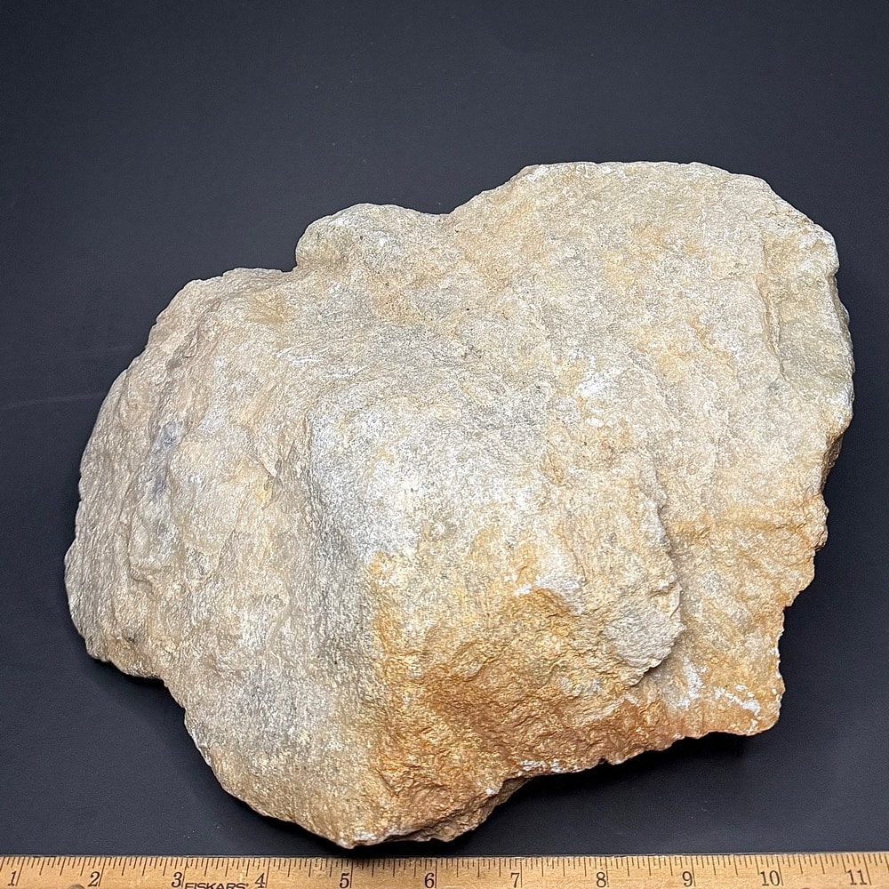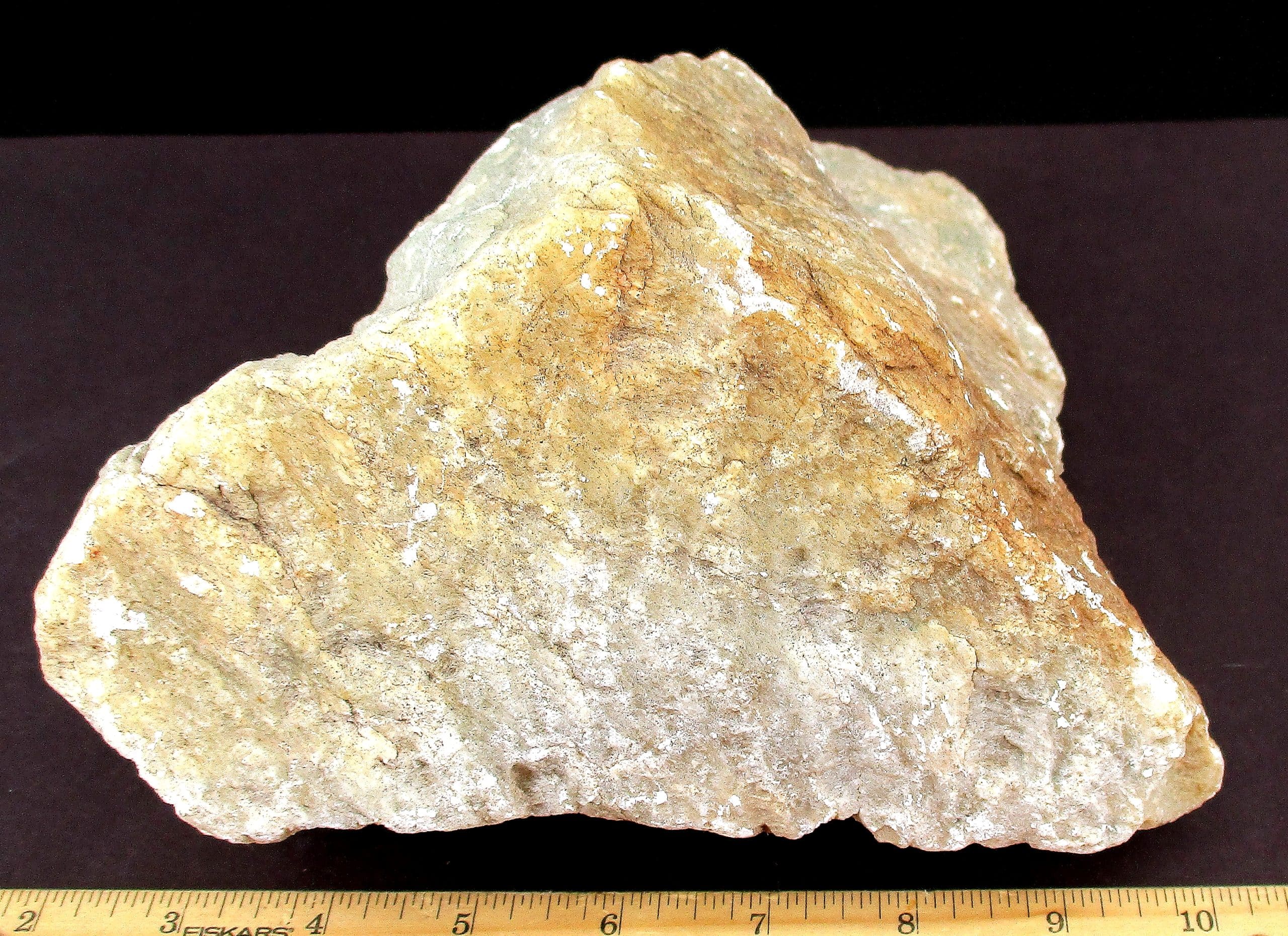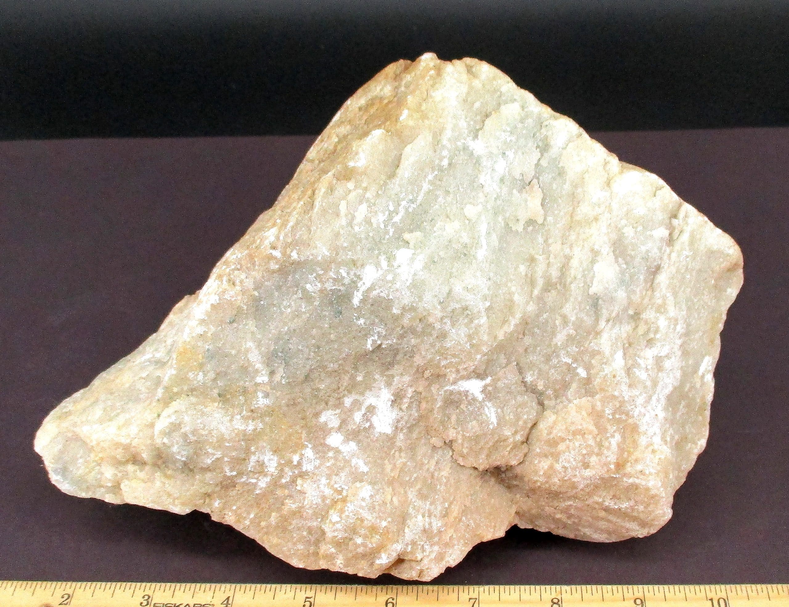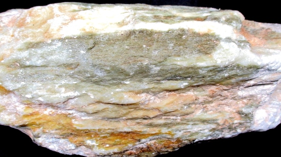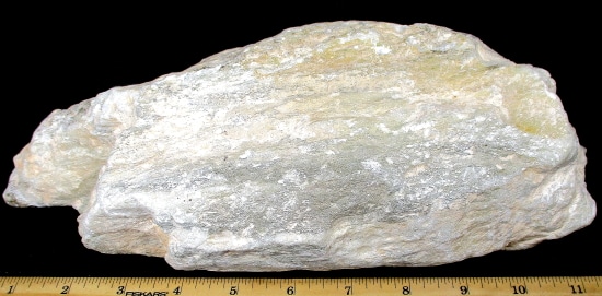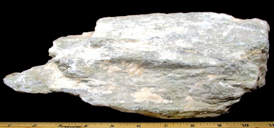 Soapstone, also known as Steatite or Soaprock, is a metamorphic rock or Talc-Schist. It is composed of the mineral Talc and is rich in Magnesium and is formed by the metamorphism of ultramafic protoliths and the metasomatism of siliceous Dolostones. It is a very soft material and may have a soapy feel when touched. It can be easily carved into decorative items as well as bowls or other cooking utensils. It is used by welders and fabricators as a marker due to its resistance to heat.