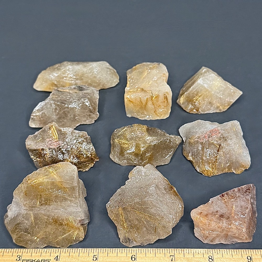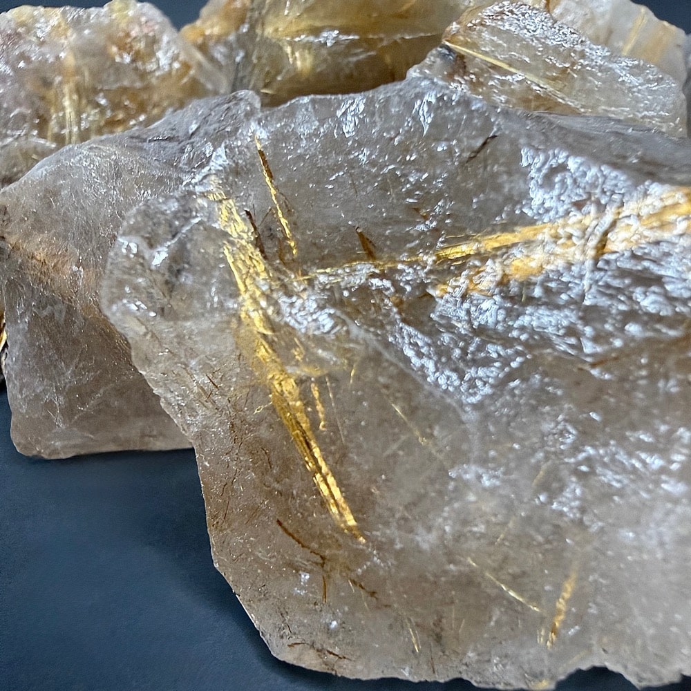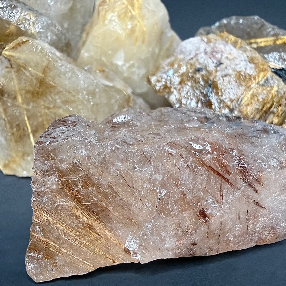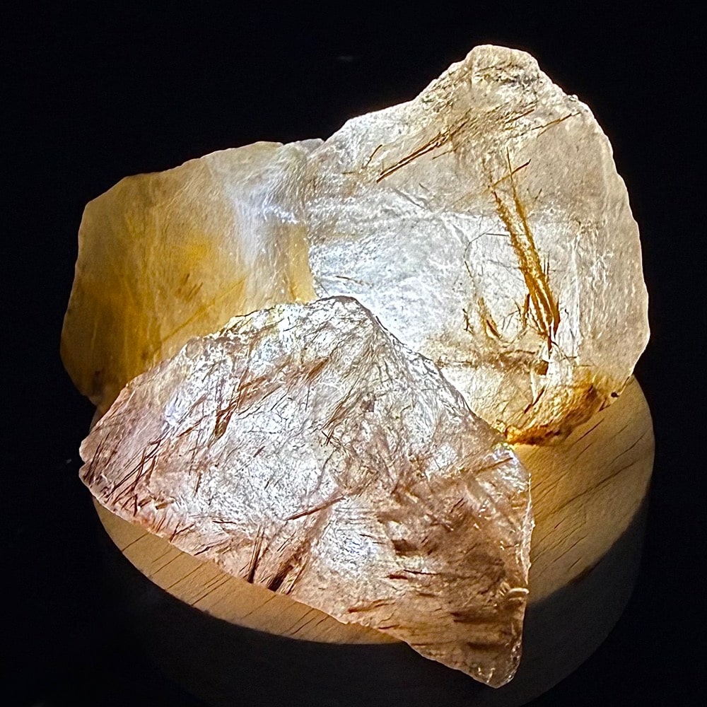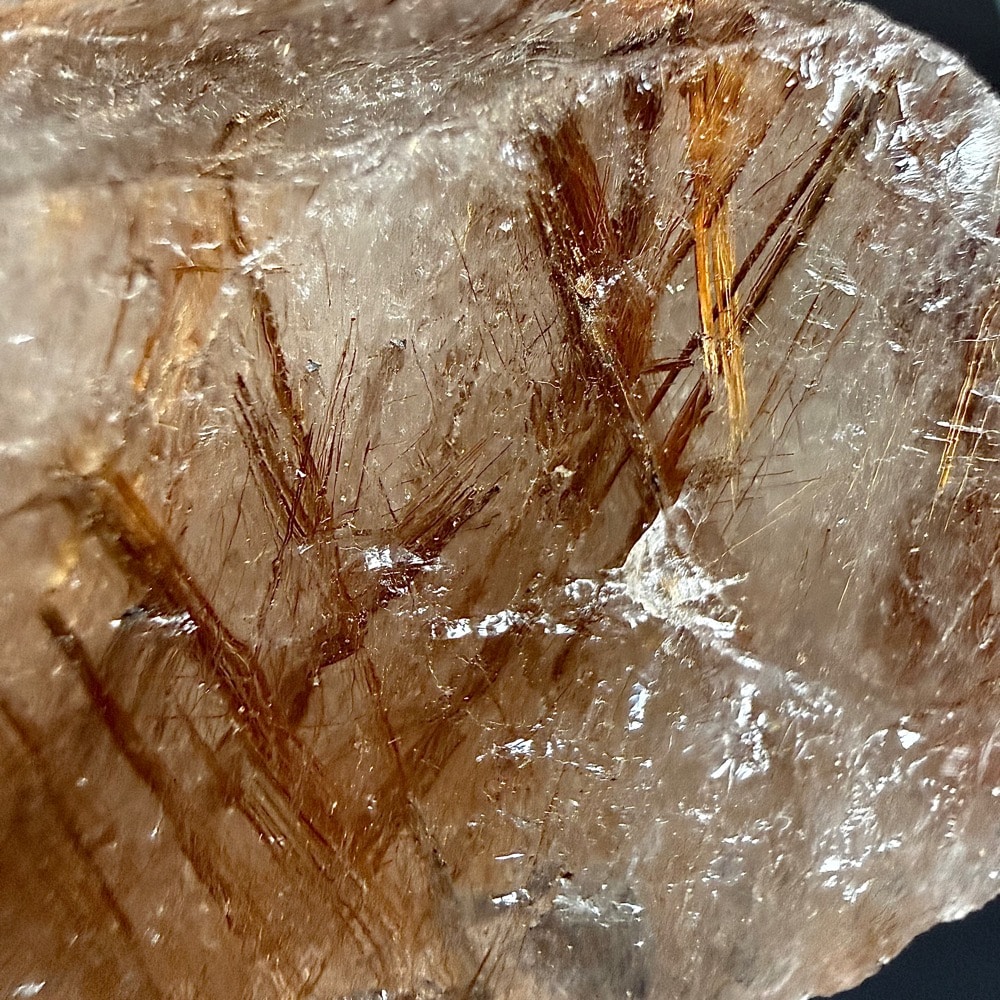 Rutile is a mineral composed primarily of Titanium Dioxide. Rutile has among the highest refractive indices of any known mineral and also exhibits high dispersion. Rutile is known to contain up to 10% Iron as well as significant amounts of Niobium and Tantalum. Rutile creates small needles within crystals that can be seen when held up to light.