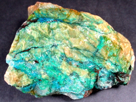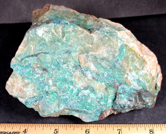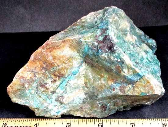 Shattuckite is a copper silicate hydroxide mineral. It is a relatively rare copper silicate mineral. It was first discovered in 1915 in the copper mines of Bisbee, Arizona in the Shattuck Mine where it gets its name. It is a secondary mineral that forms from the alteration of other secondary minerals.