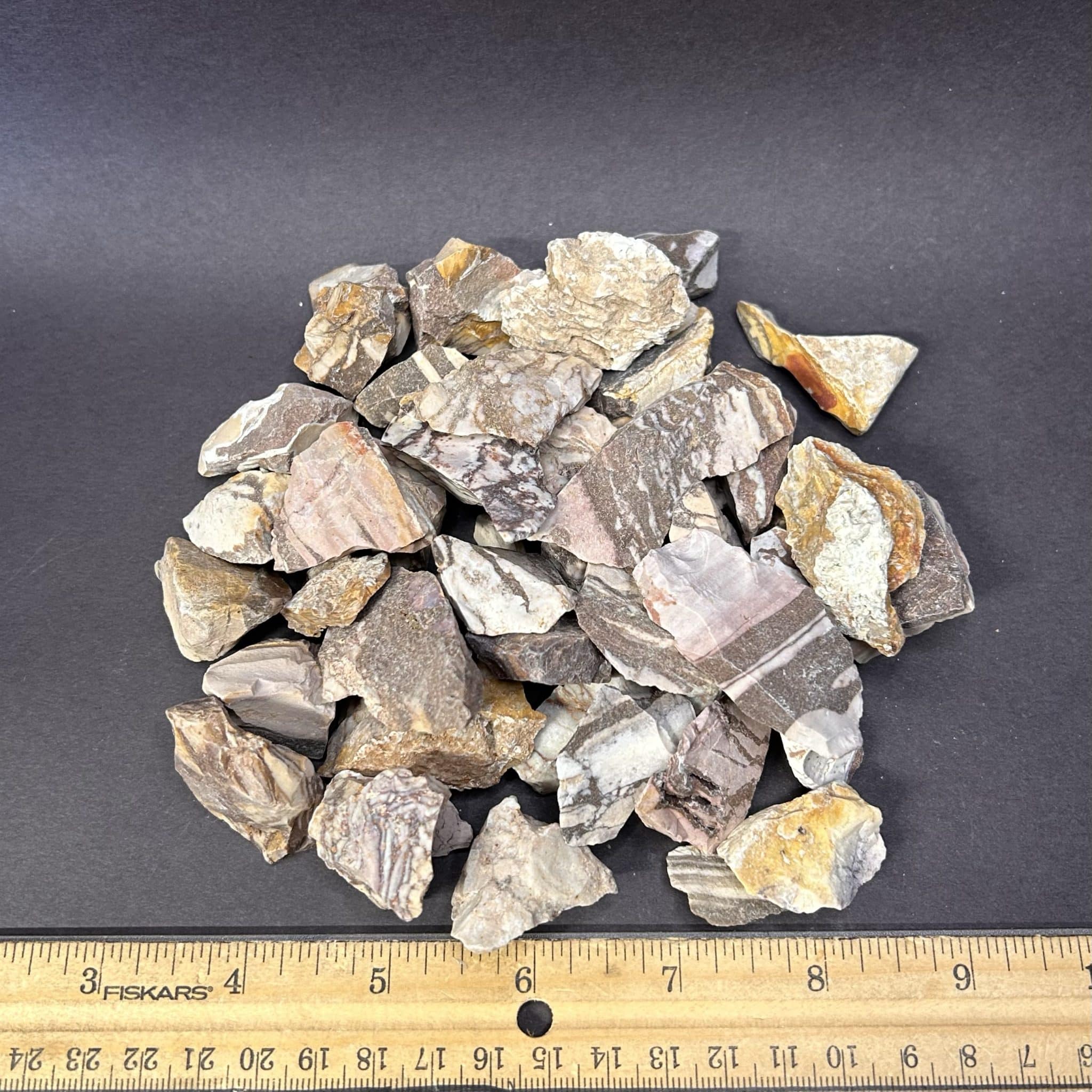 This is a nice sampling of Earth toned smaller sized Zebra Jasper from South Africa. The pieces measure approximately 3/8″ to 3/4″ in varies shapes and sizes. This material is overall good rock for the tumbler or use them as is for fountains and other decorative uses.