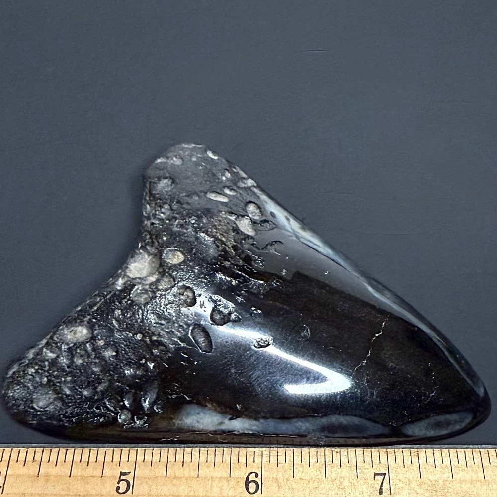 FO550: Megalodon Shark Tooth.Locality: Obscure   Selection: Polished specimen.