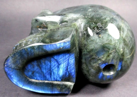 Labradorite is a Feldspar mineral that occurs in large Crystal masses in Anorthosite and shows an iridescence or “play of colors.” Gemstone varieties of Labradorite exhibiting a high degree of iridescence are Spectrolite, Moonstone and Sunstone. High quality samples with good iridescent qualities are desired for jewelry.